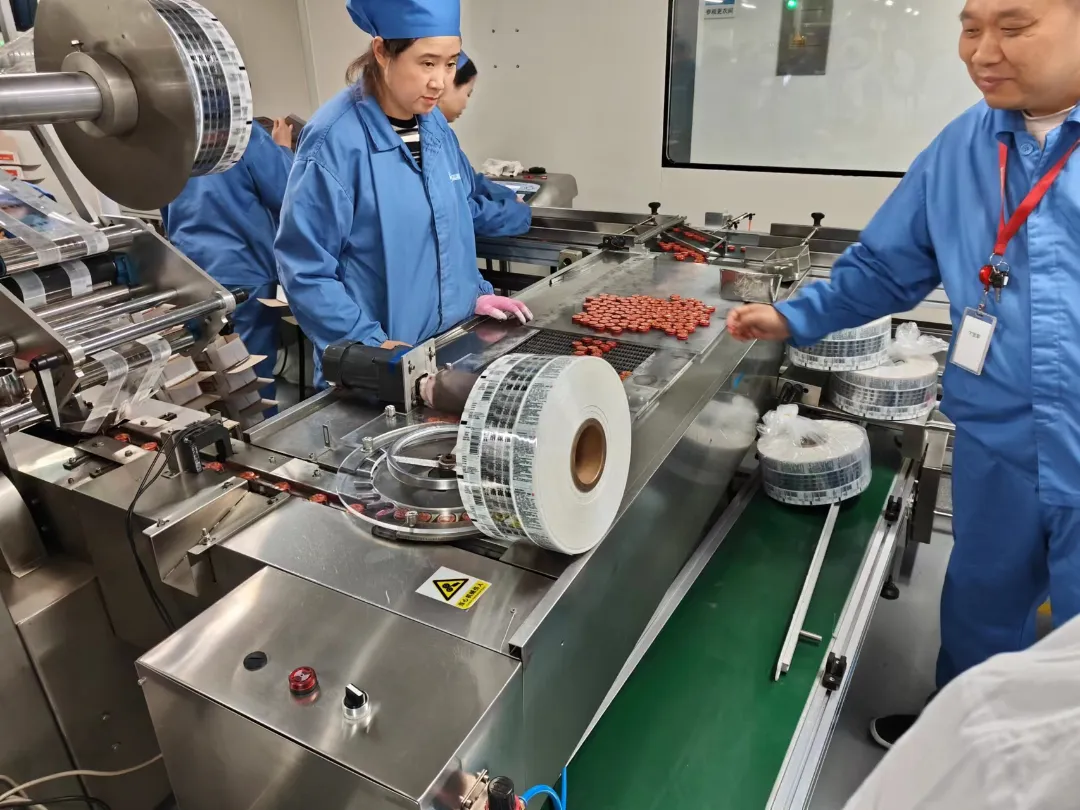 除了与员工的交流,中华药业工厂还为队员们提供了学习体验机会。团队成员在学习安全操作规范后,参与了药品包装的实际操作,亲手体验到了工艺的复杂性和细致性。通过实践,团队成员体会了工厂流水线生产方式与无菌工艺来确保产品质量和效率。
